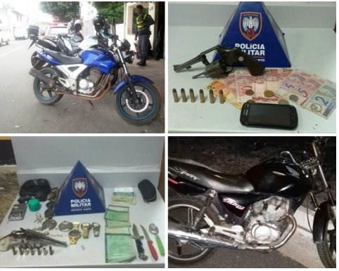 Policiais militares do 10º Batalhão apreenderam drogas e armas e recuperaram veículos em ações realizadas em bairros de Guarapari, nessa quarta-feira (25). Os detidos e materiais apreendidos foram encaminhados para o plantão policial local.