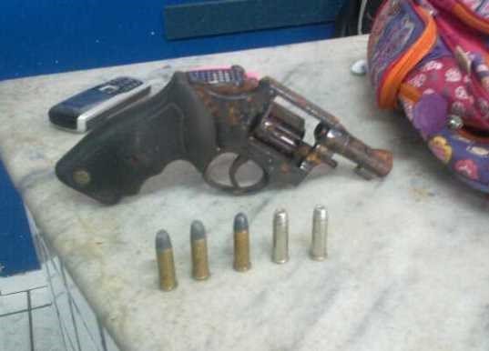 Na Avenida Antenor Elias, bairro Santa Cruz, um casal foi avistado em atitude suspeita em uma motocicleta. Na mochila da carona de 21 anos, os militares encontraram um revólver calibre 38 com cinco munições intactas. A jovem e o condutor de 29 anos foram detidos e encaminhados à delegacia local.
