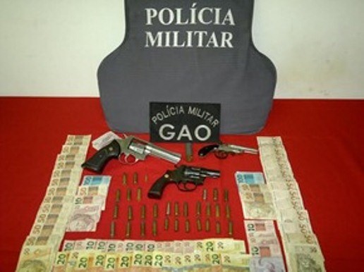 No sábado (18) uma guarnição prosseguiu em atendimento a uma ocorrência de ameaça, envolvendo um homem que, supostamente, estaria com uma arma de fogo, na Rua Manoel Belmiro dos Santos, no Bairro Nossa Senhora de Fátima. Os suspeitos foram localizados e uma busca foi realizada no carro dos envolvidos. No veículo os militares encontraram duas armas de fogo, sendo um revólver calibre 38 com seis munições e um revólver calibre 32 com sete munições intactas. Também foi encontrada uma garrucha calibre 32, munições de diferentes calibres e dinheiro em espécie, além de folhas de cheques.