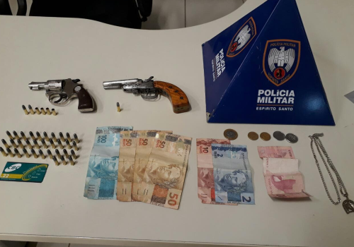 No carro também foram localizados um revólver marca Rossi e uma garrucha marca Rossi e munições, todas calibre .22, sendo 36 intactas e 4 munições deflagradas.