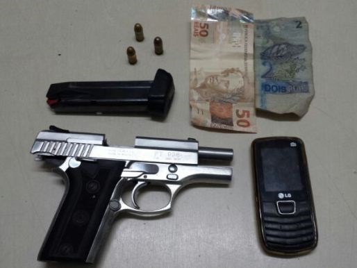 O detido estava portando uma pistola calibre 380 marca Taurus municiada.