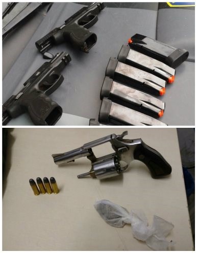 No município de Viana, as equipes da Companhia de Operações de Choque detiveram T.K.D.C., de 18 anos e apreenderam duas pistolas .40 e seis carregadores do mesmo calibre. A suspeita foi abordada durante um ponto de bloqueio realizado na altura do bairro Ribeira. Os armamentos foram localizados após a revista pessoal, e, segundo levantamentos, seriam entregues na Rodoviária de Vitória a um receptador não identificado.