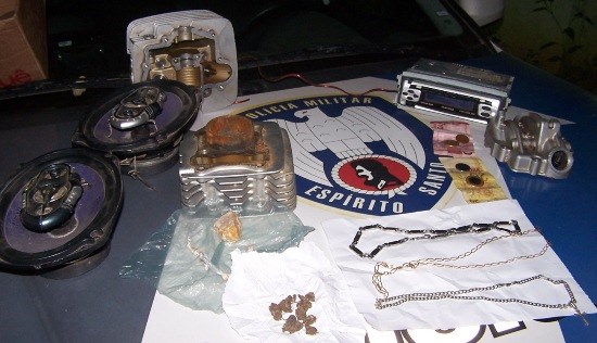 Ainda durante o patrulhamento os militares abordaram L.O.M., de 18 anos, que tentou fugir ao ver a viatura no bairro. Com ele foram encontradas 15 pedras de crack e em sua residência, oito pedaços de maconha, pesando 25 gramas cada, além de peça de motocicleta, aparelho e caixas de som automotivo entre outros objetos.