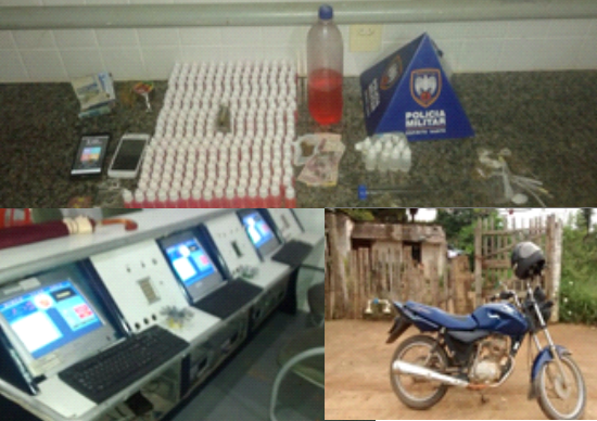 Policiais militares do 10º Batalhão apreenderam entorpecentes e materiais de jogos proibidos, recuperaram veículo roubado e detiveram suspeitos em ações realizadas no município de Guarapari neste domingo (24) e sábado (23). Os suspeitos e os materiais apreendidos foram encaminhados para o plantão policial local.
