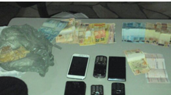 O veículo, o dinheiro, seis aparelhos celulares e outros materiais apreendidos foram encaminhados para a Delegacia de Polícia local.