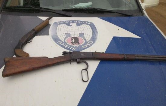 Policiais militares realizavam patrulhamento preventivo na região de capuaba quando observaram três indivíduos em atitude suspeita. Ao realizarem a devida abordagem aos indivíduos os militares encontraram com eles duas espingardas.