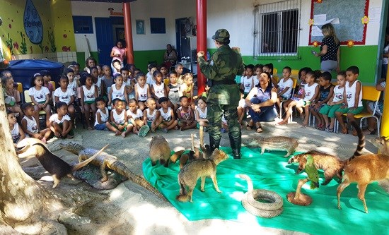 Durante a ação, os policiais montaram um estande com a apresentação de animais silvestres taxidermizados. As crianças puderam conhecer de perto e aprender sobre a importância da preservação dos animais para a qualidade de vida dos seres humanos.