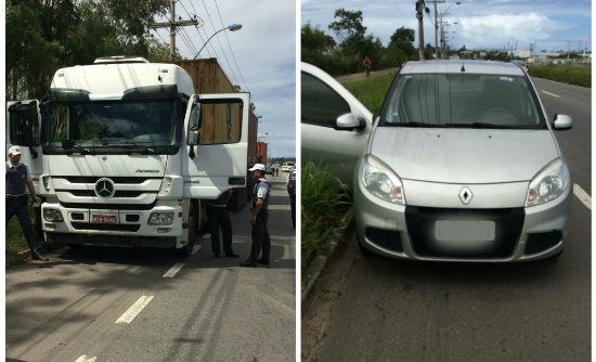 O condutor do caminhão foi detido e encaminhado ao plantão policial local, juntamente com os veículos para o registro das ocorrências.