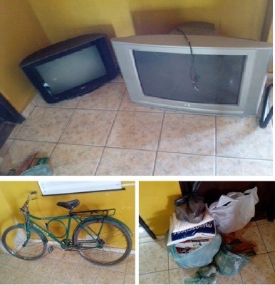 Com a dupla os policiais recuperaram dois televisores de 29 polegadas, uma cafeteria, uma bicicleta, e diversas mantimentos, que foram furtadas na residência de um casal de agricultor residente no Córrego Timbopeba, na madrugada desta sexta (21). Os suspeitos arrombaram a porta da casa e praticaram o furto.